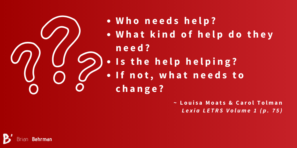 What kind of help do they need? – Once we’ve identified our students who need help, the next goal is how to help them. If that student is below the benchmark, it’s time to do a diagnostic assessment. Recently, the leadership team in my building has been looking at the LETRS Phonics and Word-Reading Survey as a potential tool for diagnostic screening (accessible here). What we like about it is that it’s organized according to the progression of phonic elements. For most students, it will take 5-10 minutes to complete. Once you reach a point of frustration for the student, you stop. When you fill out the summary chart, you should have a clearer picture of where the student’s phonics and phonemic awareness have broken down. Once you know that, you can decide on an intervention for your student, and where you might want to start them.