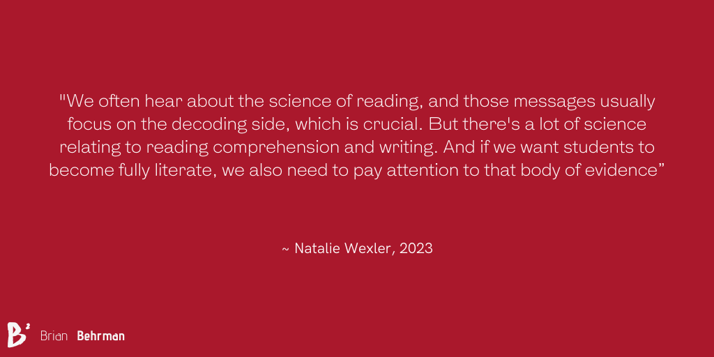 In last week’s post, I began to really dig into the concept of the purpose of reading. With our work around Science of Reading, we have really spent a lot of time, especially in our early grades, focused on structured literacy and skills like phonemic awareness, phonics, and decoding, but as Natalie Wexler reminds us: