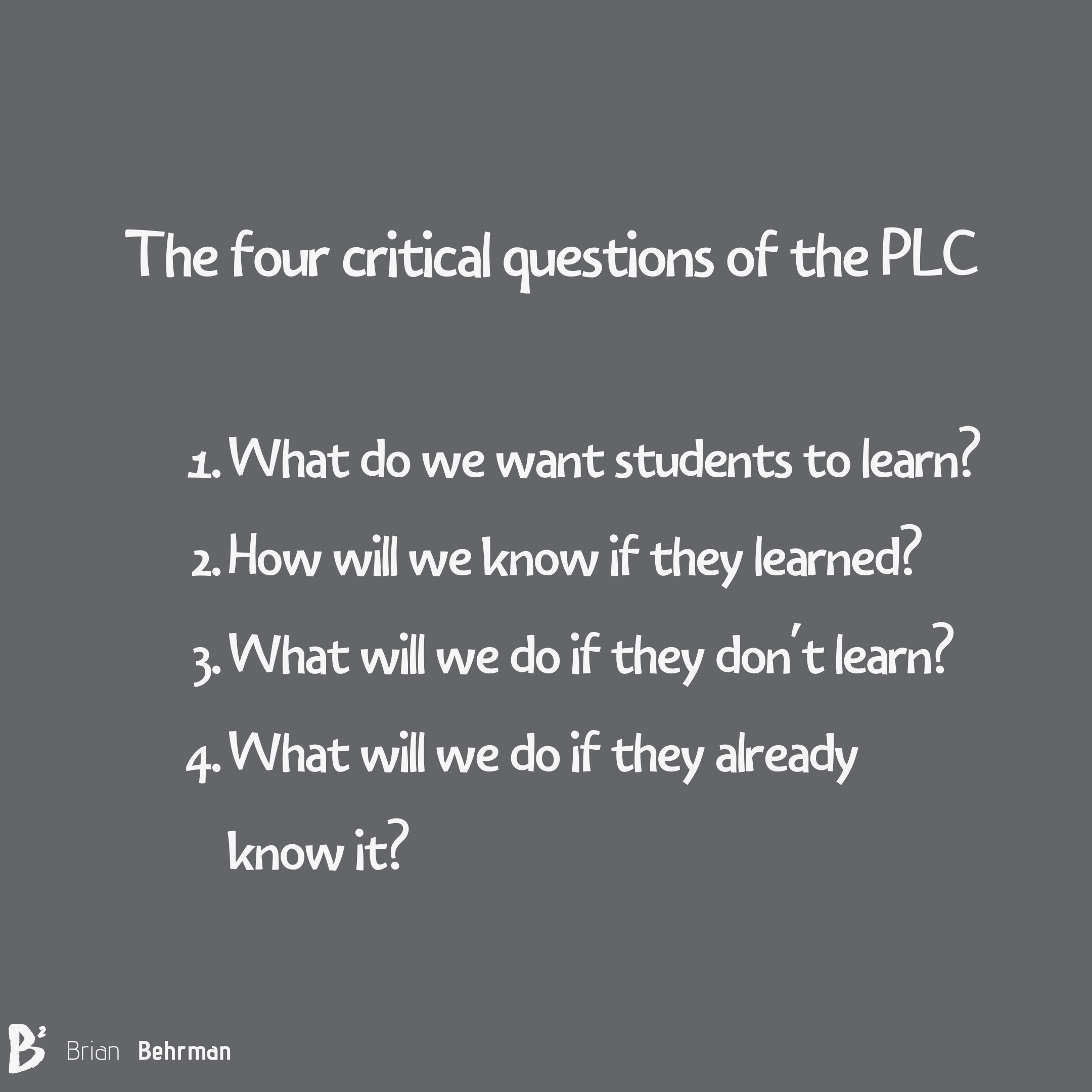 Earlier this summer, I led a group of teachers and the assistant principal from our school to the PLC (Professional Learning Community) at Work Conference in St. Louis. This conference, hosted by Solution Tree, gathered some of the leading experts in PLC. As you read this blog over the fall, you may see a few references to the invaluable learning that occurred there, and this post is the first one that will draw from that experience. Whether you are already engaged in true PLC work or not, the PLC process’s premise, built around 4 key questions, is crucial to our discussion.