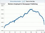 What about another one of those writing activities that appears in many classrooms (including mine in the past) – the newspaper article. Now, I will say that I have a subscription to the Indy Star, and while I can’t say that I ever read it cover to cover, and that there are some days that I don’t get to it at all, I do love having the option to sit down and read the paper. However, the statistics on print media are noticeable. I did a quick google search and found the charts below. There’s less money coming into print media in the form of ad revenue, and the number of workers employed in newspaper publishing has been in pretty steady decline.